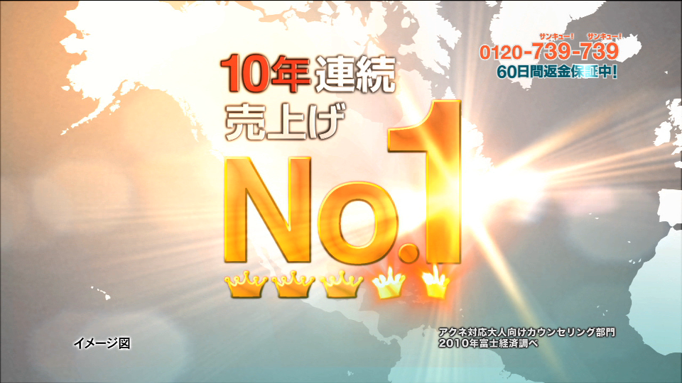 前回に引き続き、ニキビケア化粧品プロアクティブのインフォマーシャル29分版を制作させて頂きました。歌手の伊藤由奈さんがMCをされました。植物性成分のイメージと清潔感のある感じを表現出来るよう制作致しました。モーショングラフィックスの制作だけでなく、コーナー部分ではディレクションもさせて頂いております。